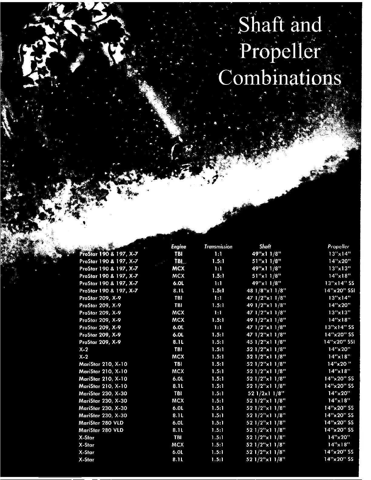 MasterCraft X-Star 2003 - Technical Specifications and Warranty Information; Shaft and Propeller Combinations
