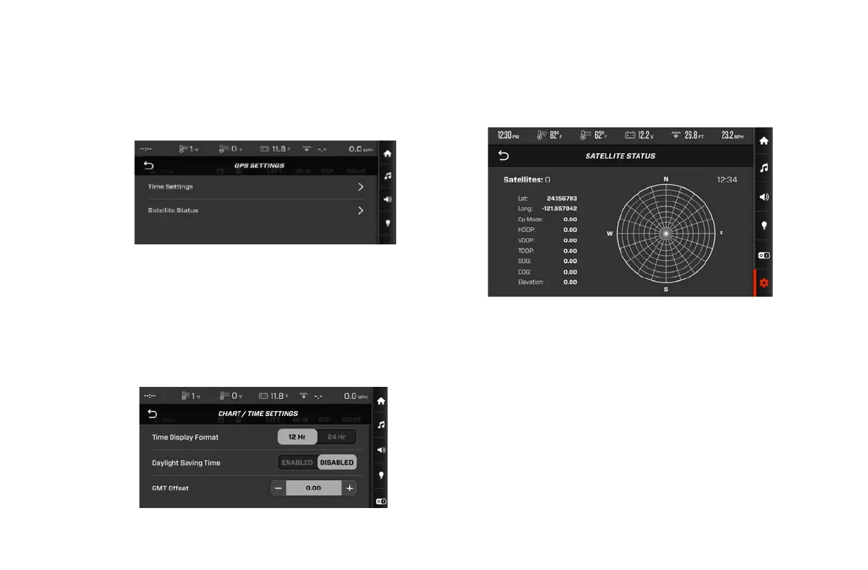 Settings has options for Time Settings and Satellite Status.