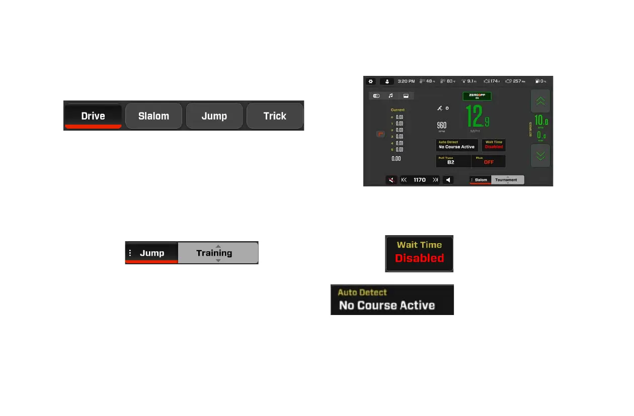 The 3 Event screen can be accessed by pressing Slalom, Jump or