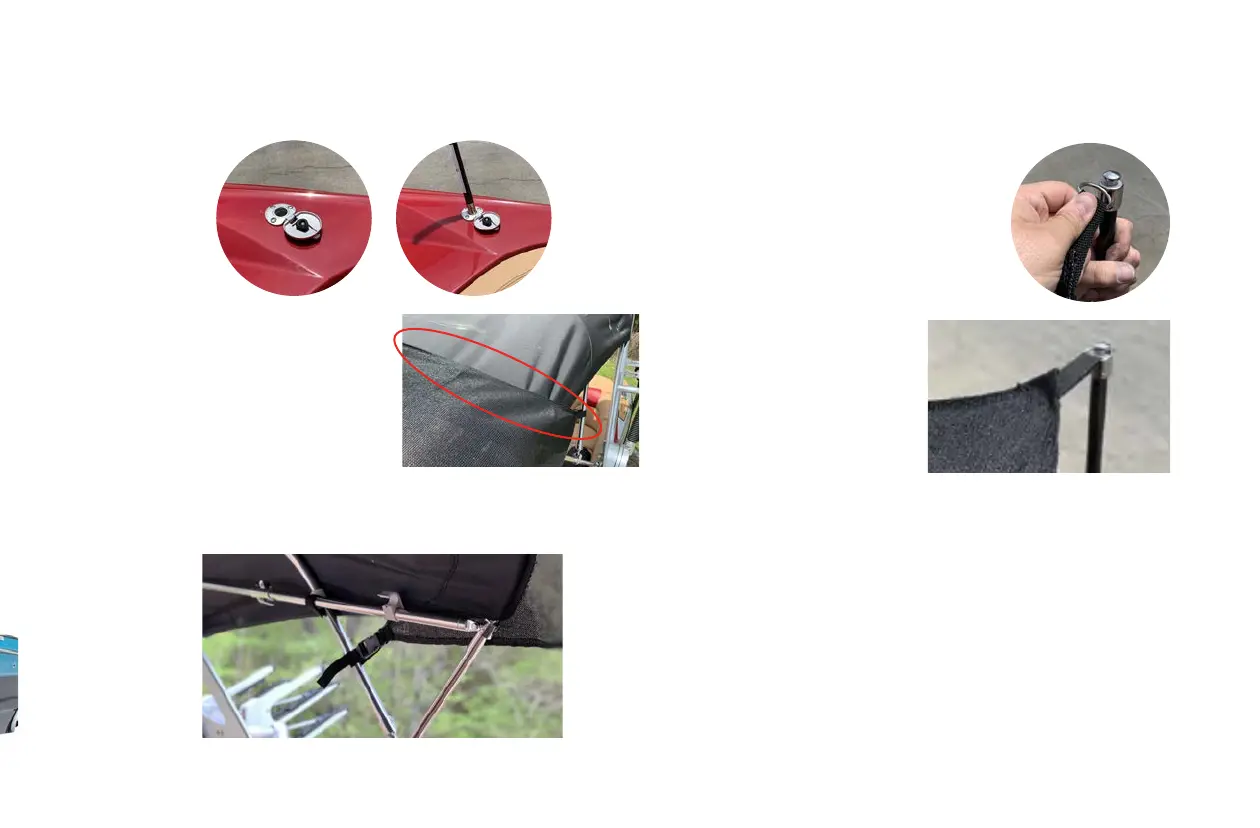 6. Move to the forward end of the shade. Stretch the canvas forward
