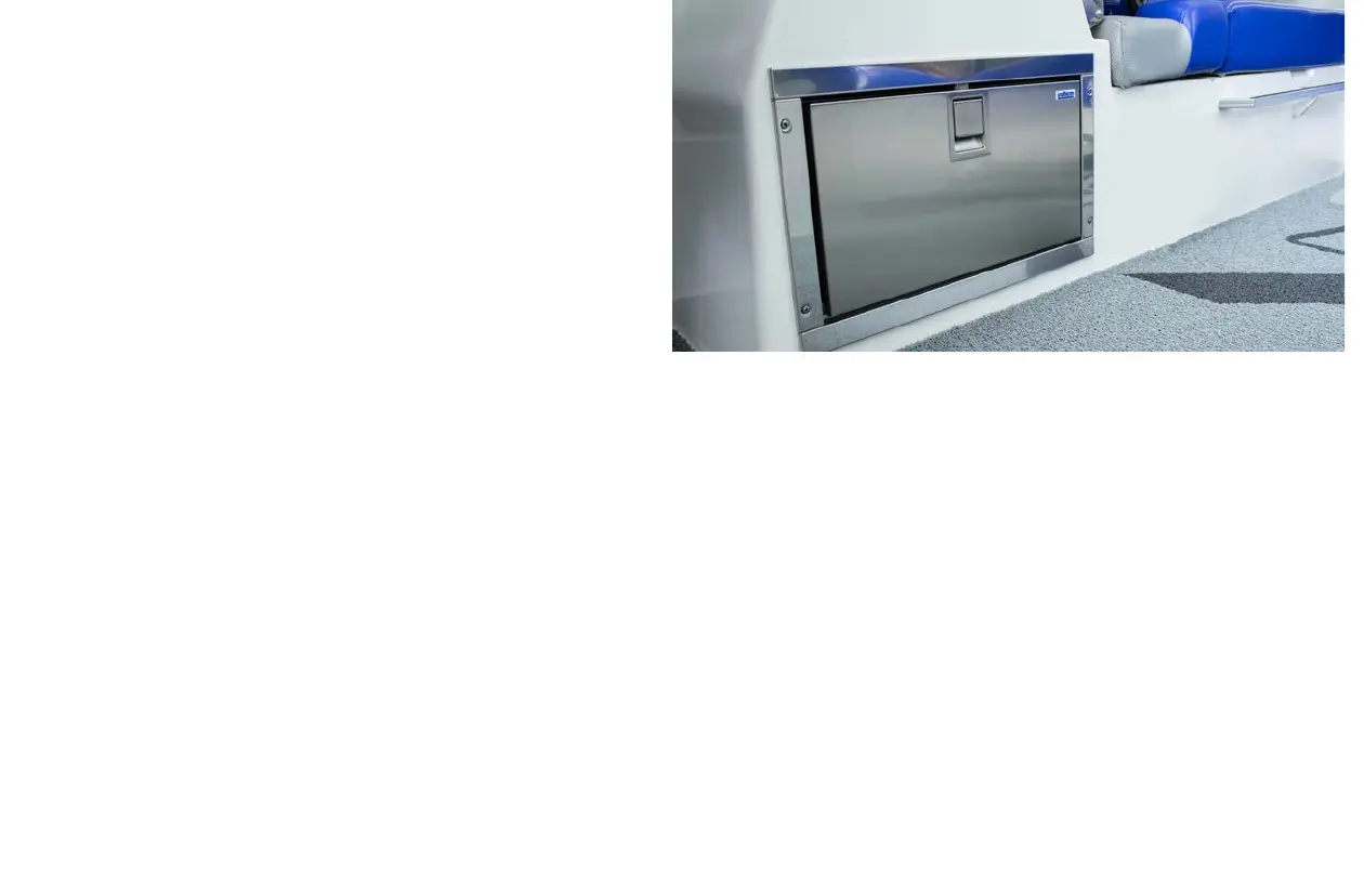 The refrigerator unit is located immediately aft of the driver’s seat,