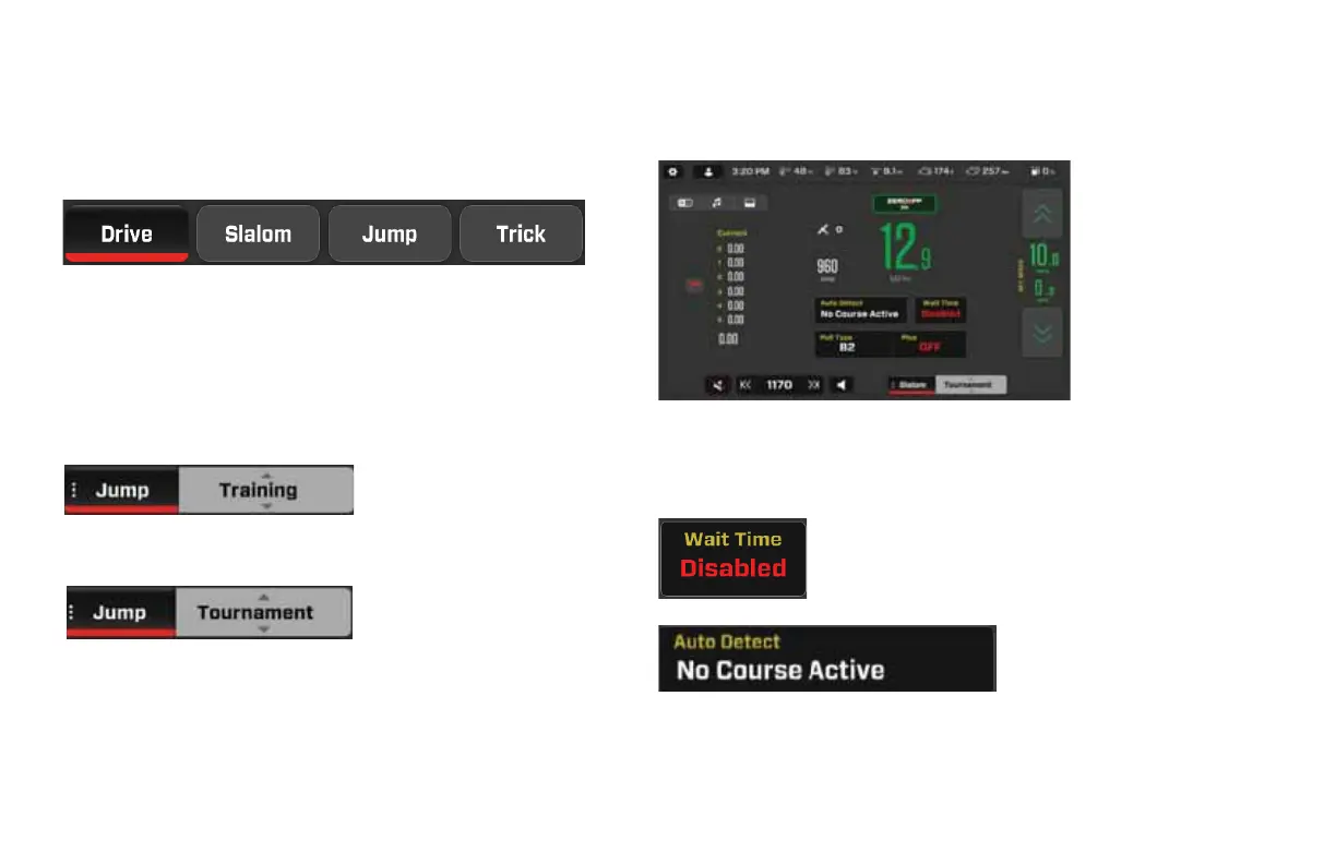 The 3 Event screen can be accessed by pressing Slalom, Jump or