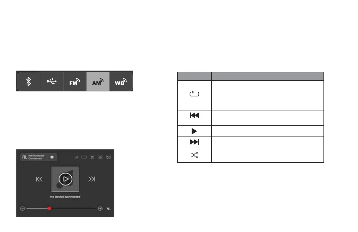 USB Media and FM/AM/Weather band radio signals. One of the
