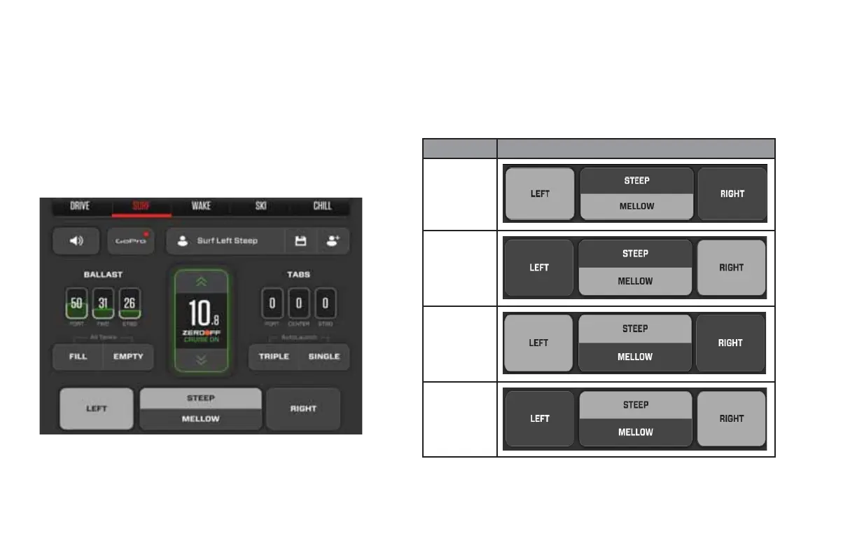 the surfing experience. To set a profile, tap LEFT or RIGHT, then select