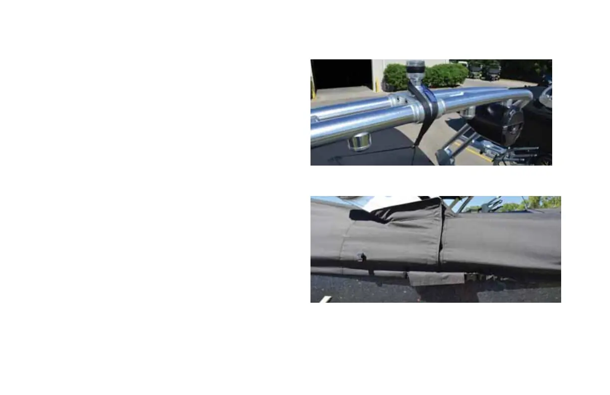 straps to secure the cover onto the boat. Ratchet the straps until