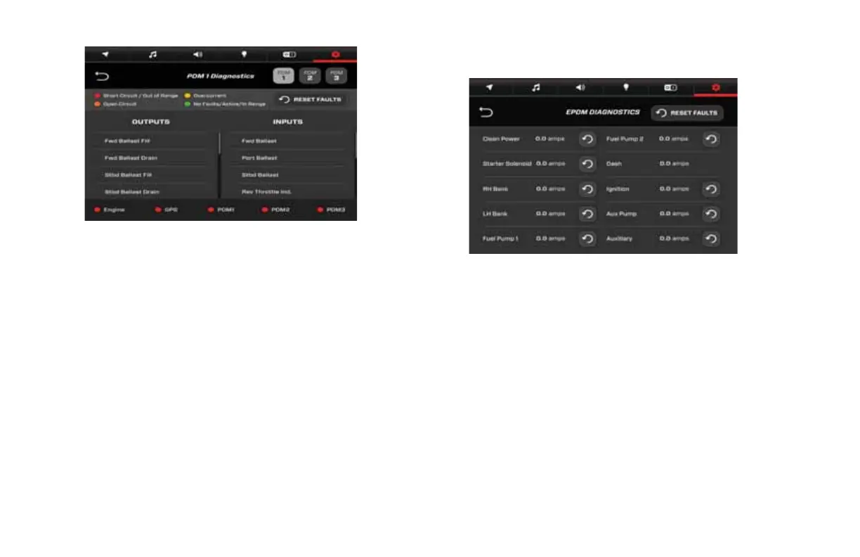 tap PDM 1, PDM 2 or PDM 3 on the PDM Diagnostics page. Faults