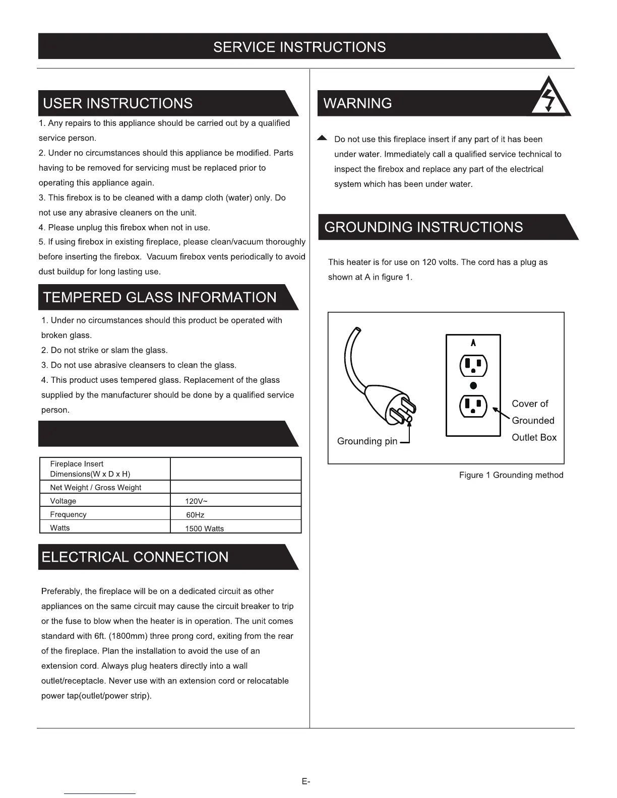 ELECTRIC FIREPLACE SPECIFICATIONS