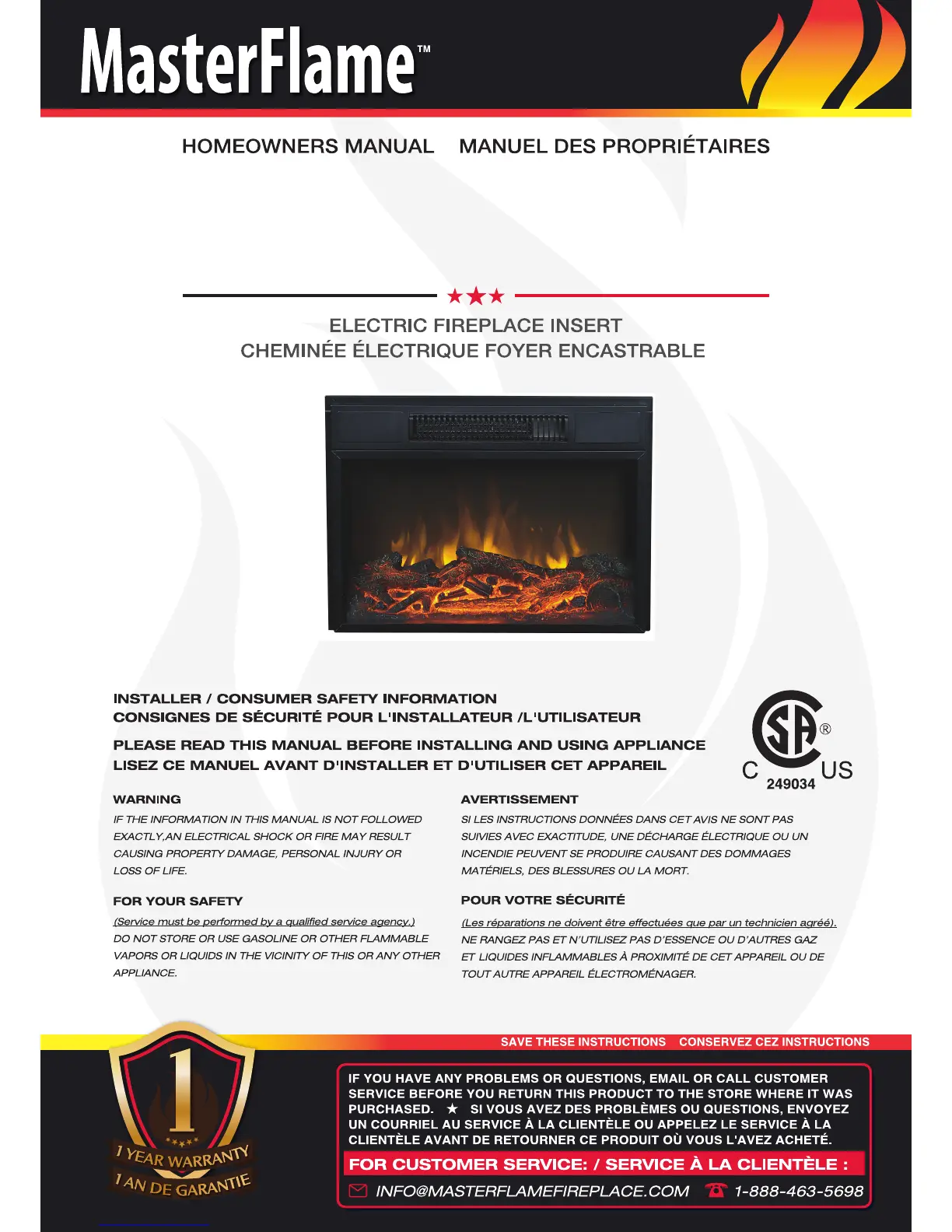 MASTERFLAME HAMILTON - Homeowners Manual and Safety; Installer and Consumer Safety Guidelines