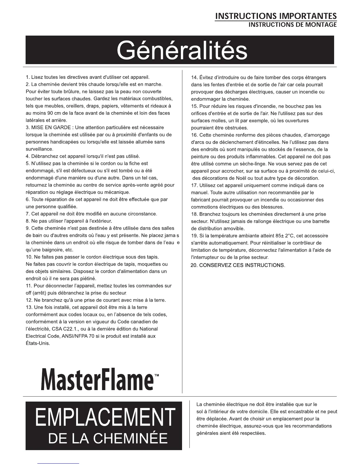 résultats, placer la cheminée électrique loin des rayons directs