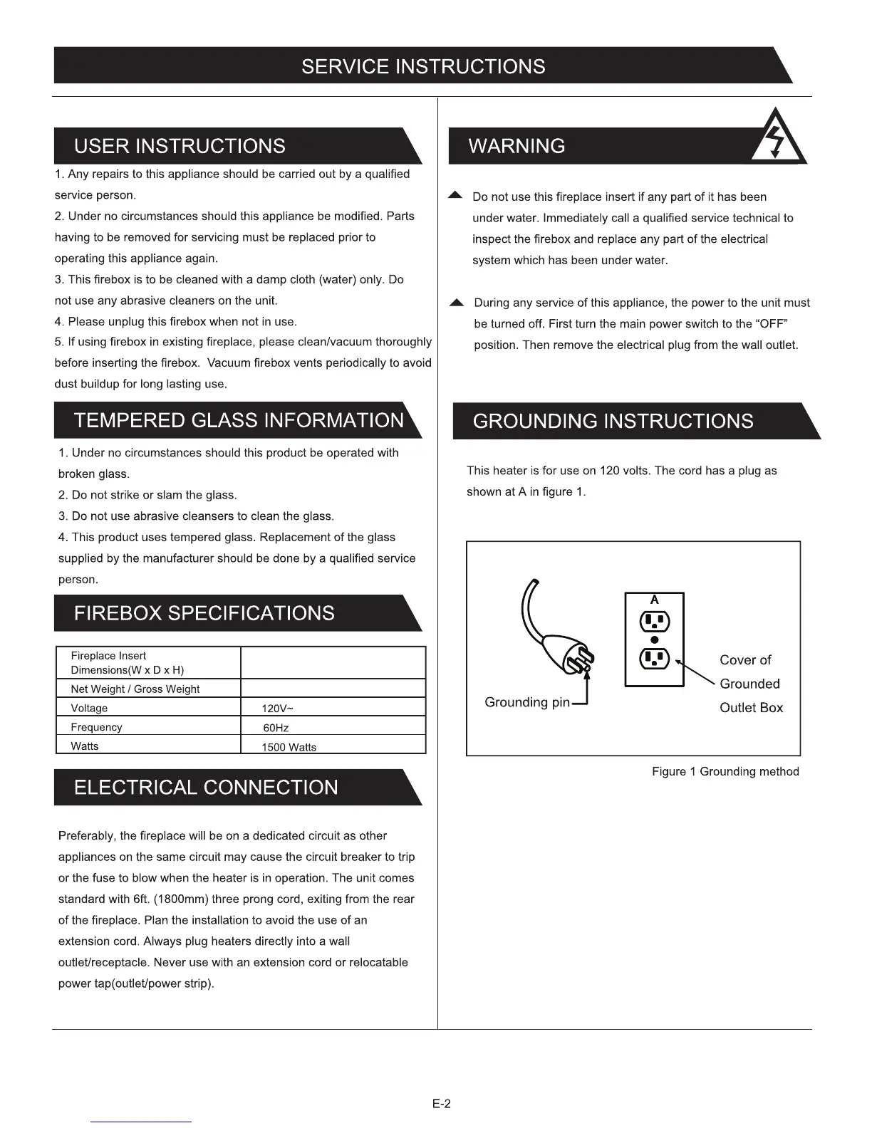 MASTERFLAME TED25 G3 - Service and Technical Information; User Instructions and Precautions; Tempered Glass Information; Firebox Specifications