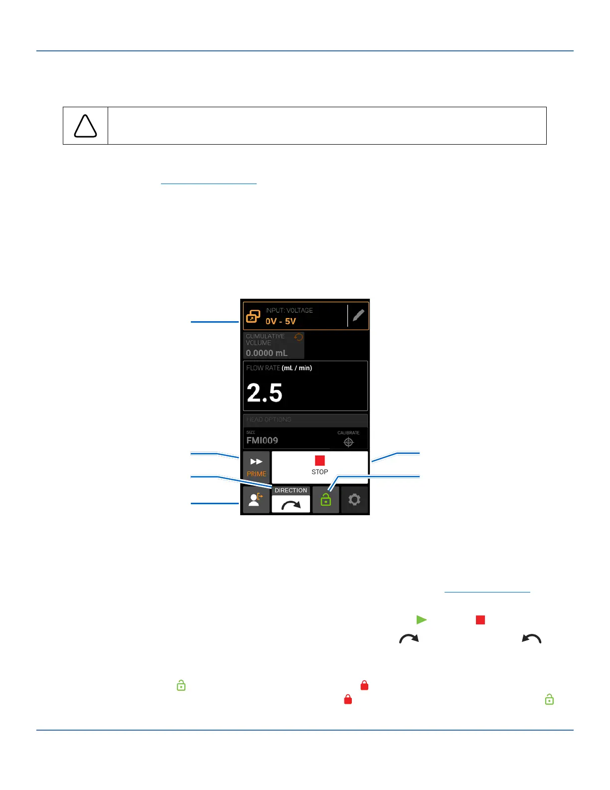 B. PRIME: Press and hold to prime the pump drive (for further information see "Priming the Pump" on