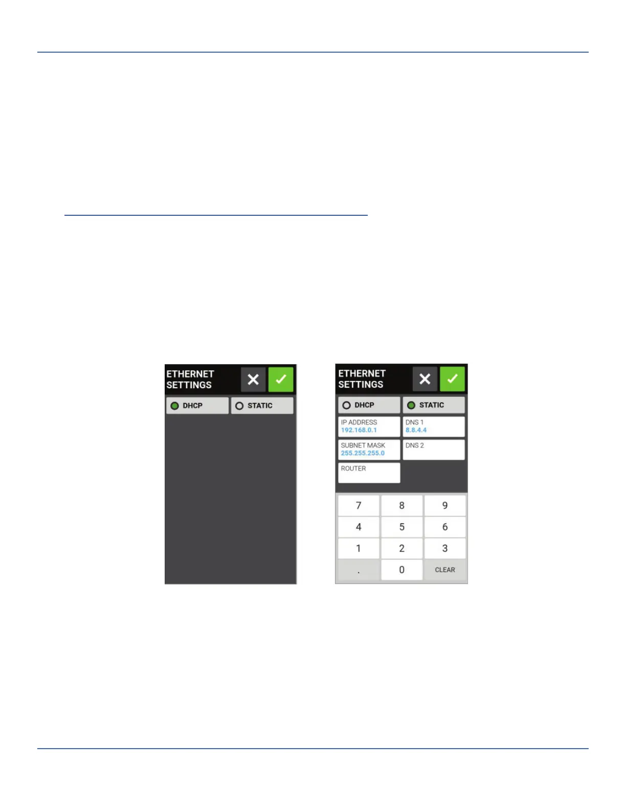 addressing methods for the pump is DHCP. Static IP address may be assigned through the Ethernet settings
