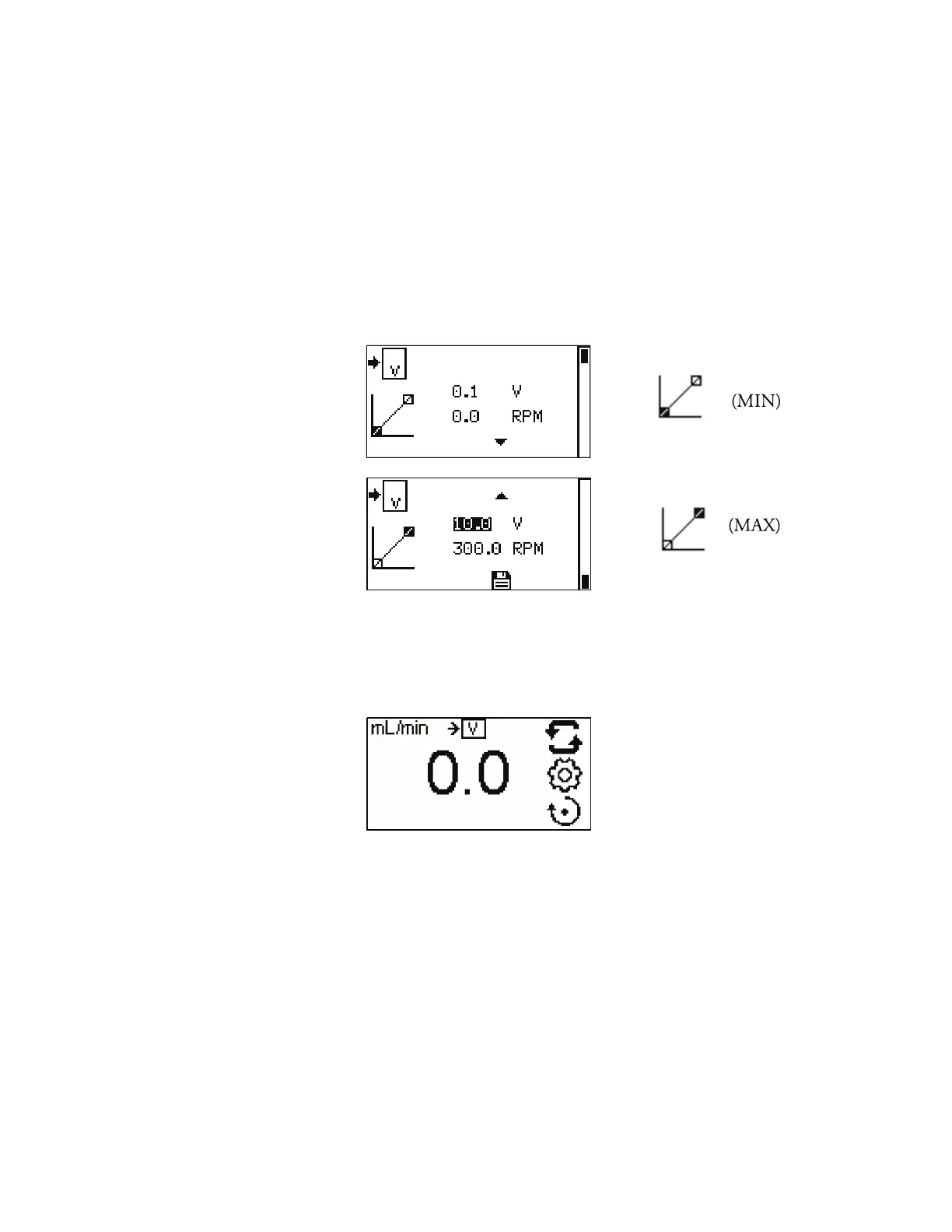 (MIN) voltage is set to 0.1V DC and the RPM is set to 0.0. e