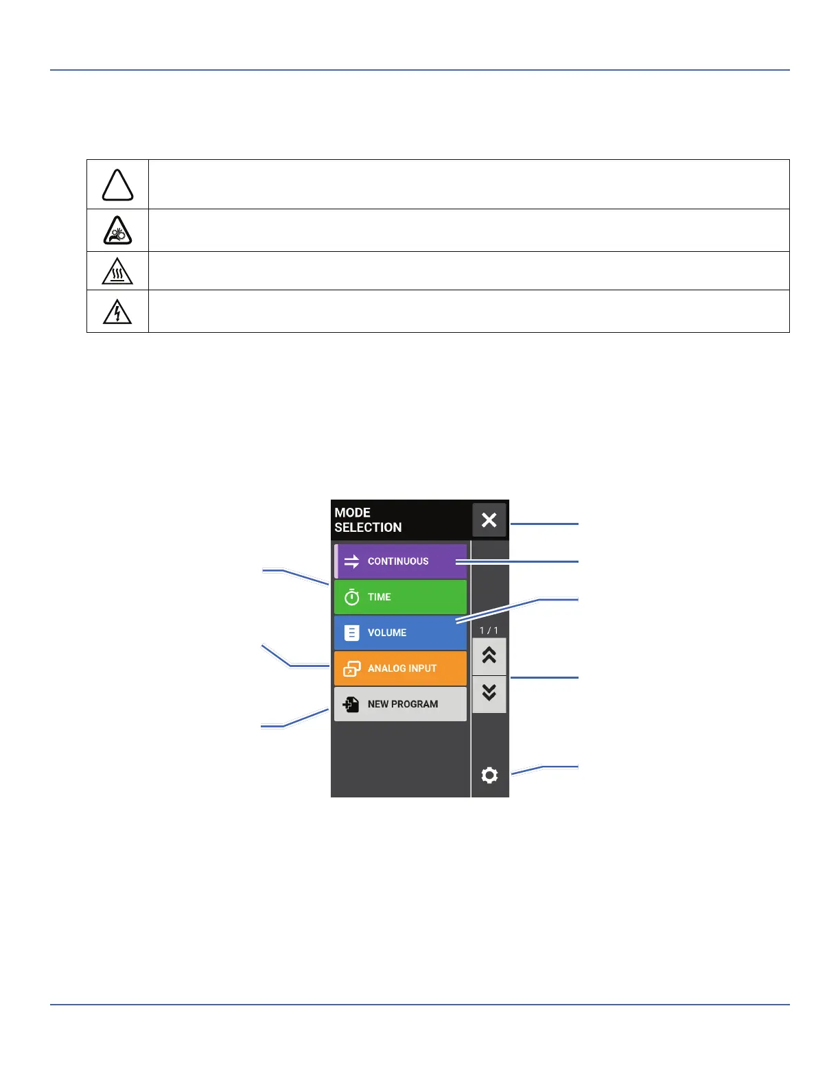 VOLUME, and ANALOG INPUT) as well as the New Program Screen and user de ned programs. e Mode