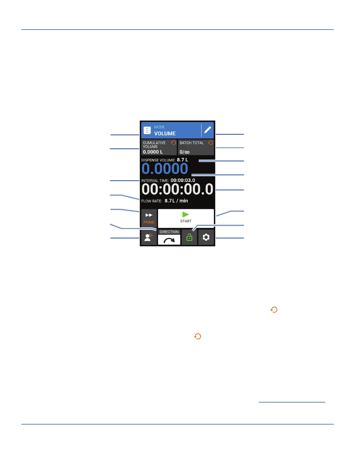 In Volume Mode the pump will operate at a selected rpm and/or ow rate until a selected volume of uid has
