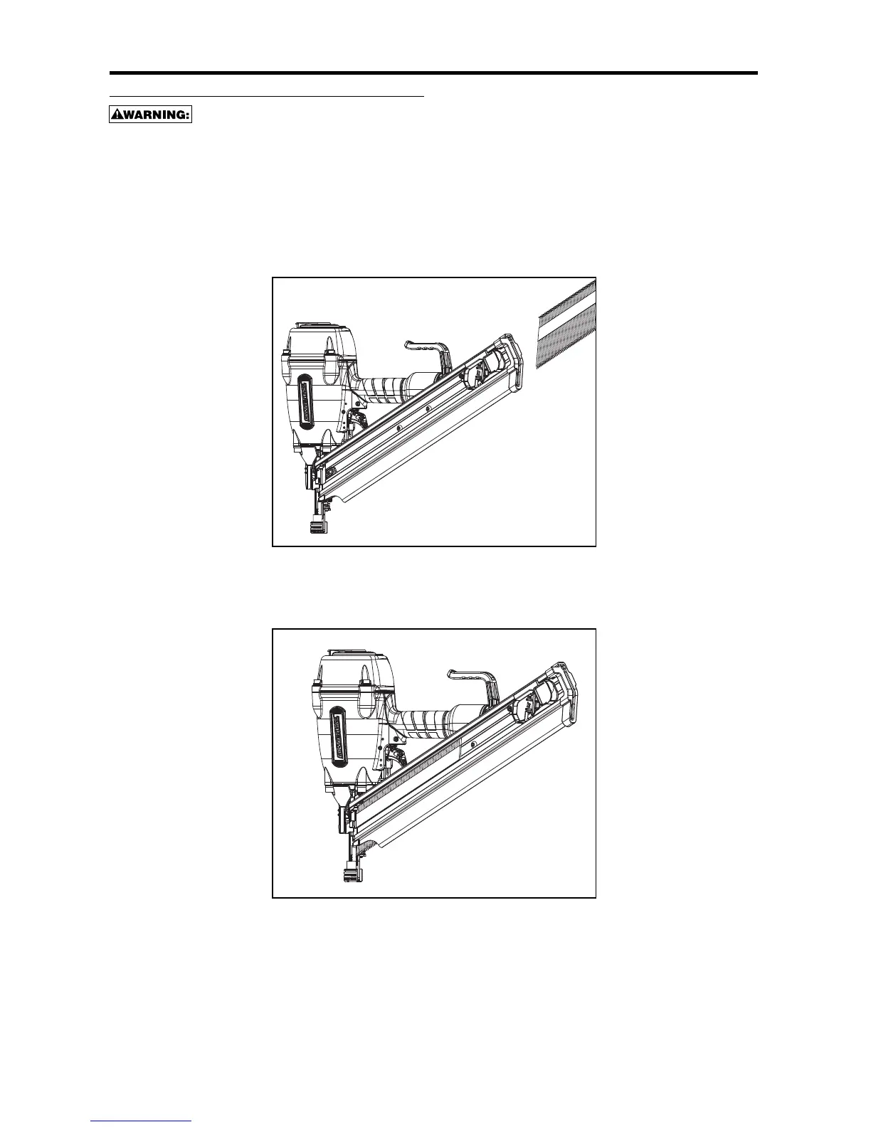 • Do not pull the trigger or depress the trip mechanism while loading the tool.