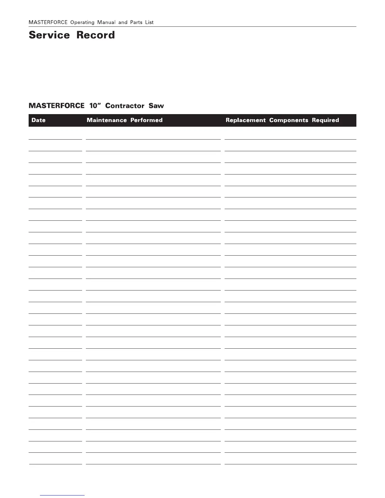 MasterForce 240-0037 - Service Record Form