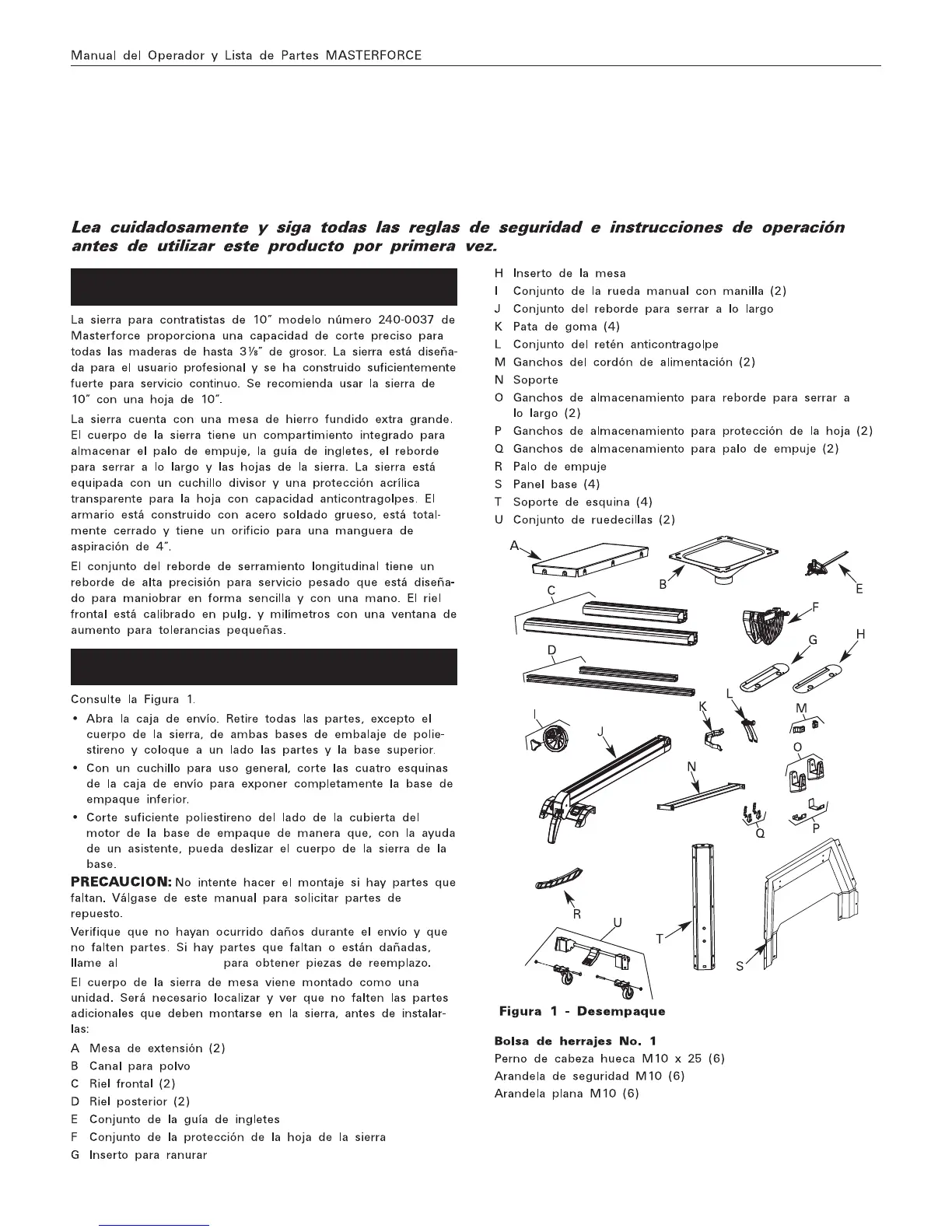 MasterForce 240-0037 - Descripcion; Desempaque