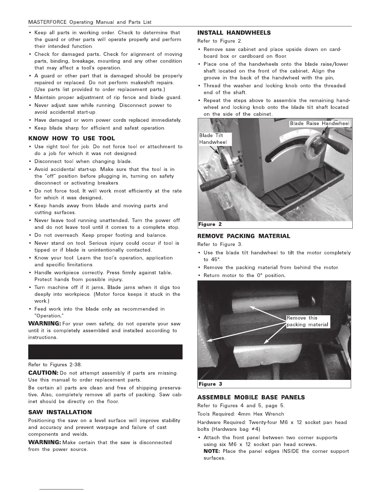 MasterForce 240-0037 - Saw Assembly Procedures; Base and Caster Assembly