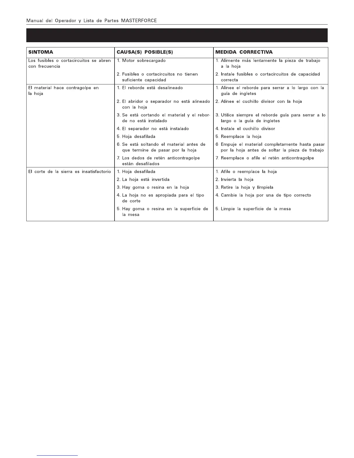 MasterForce 240-0037 - Identificacion de Problemas