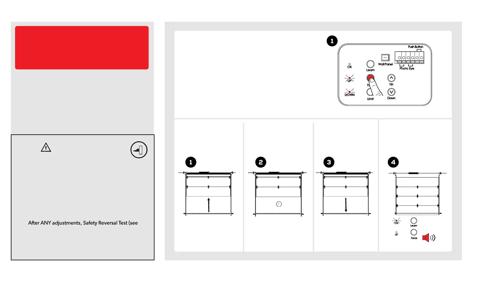 Press and release the “Force” button once. Door will