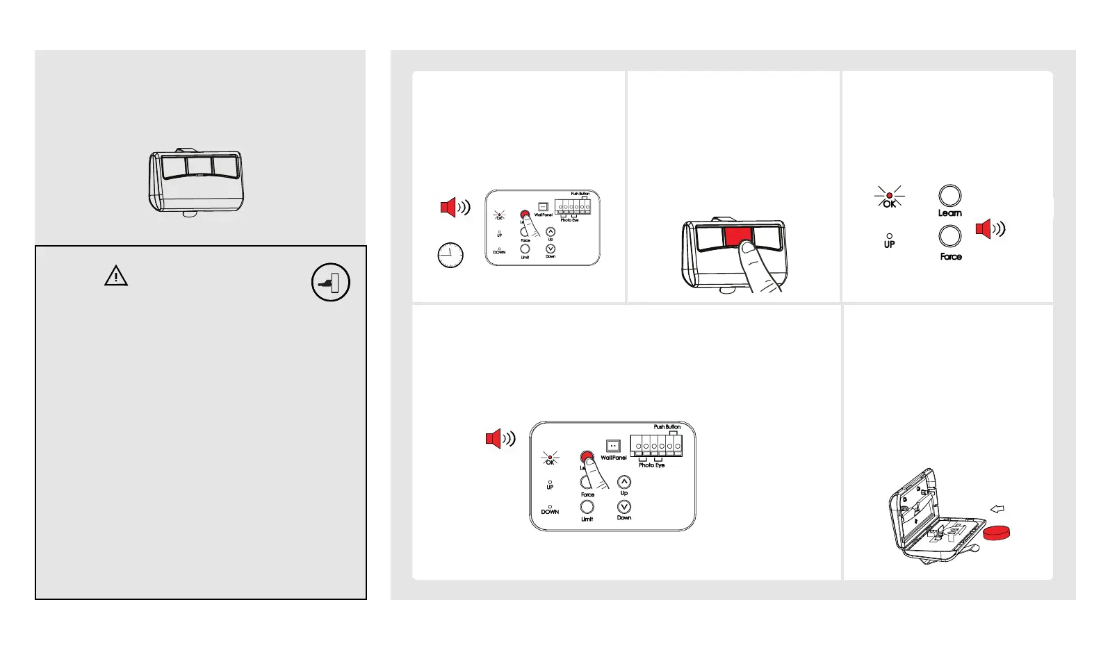 To erase ALL remote controls from memory, press and hold “Learn”