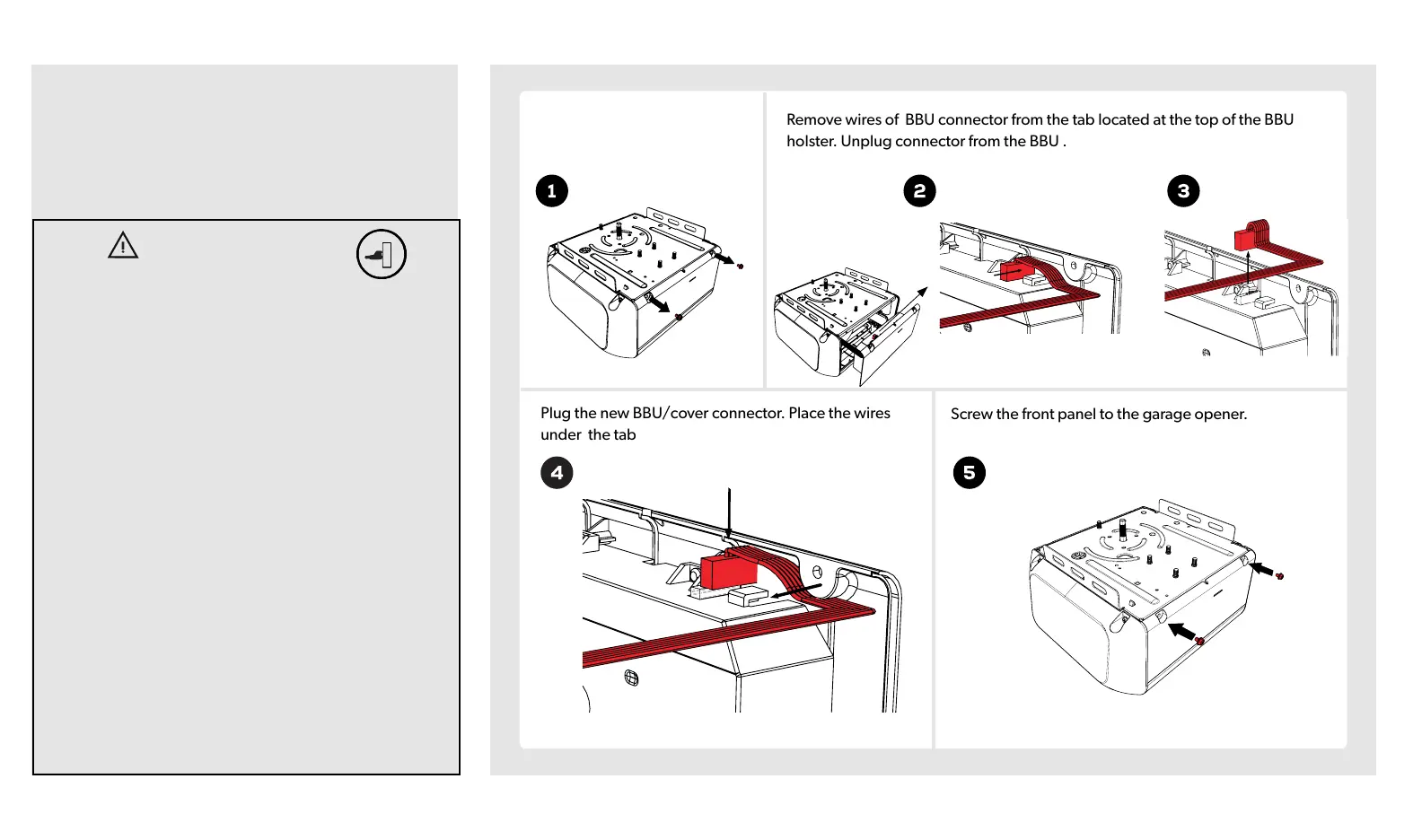 Remove wires of BBU connector from the tab located at the top of the BBU