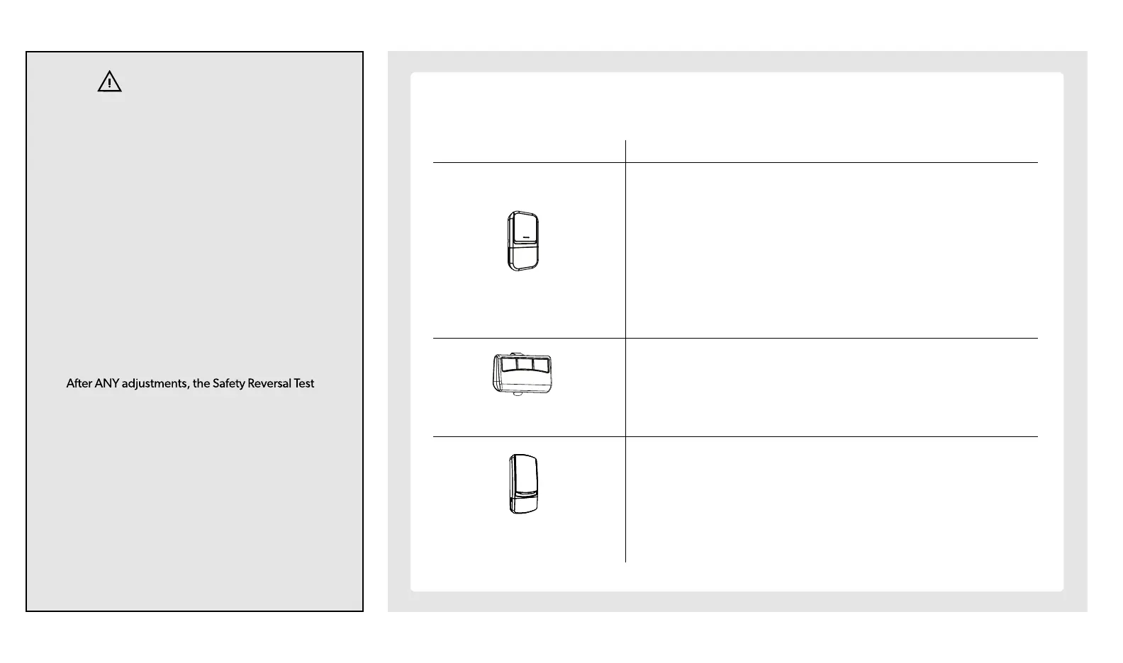 • For safety concerns, the door control WILL NOT work if the photo eye