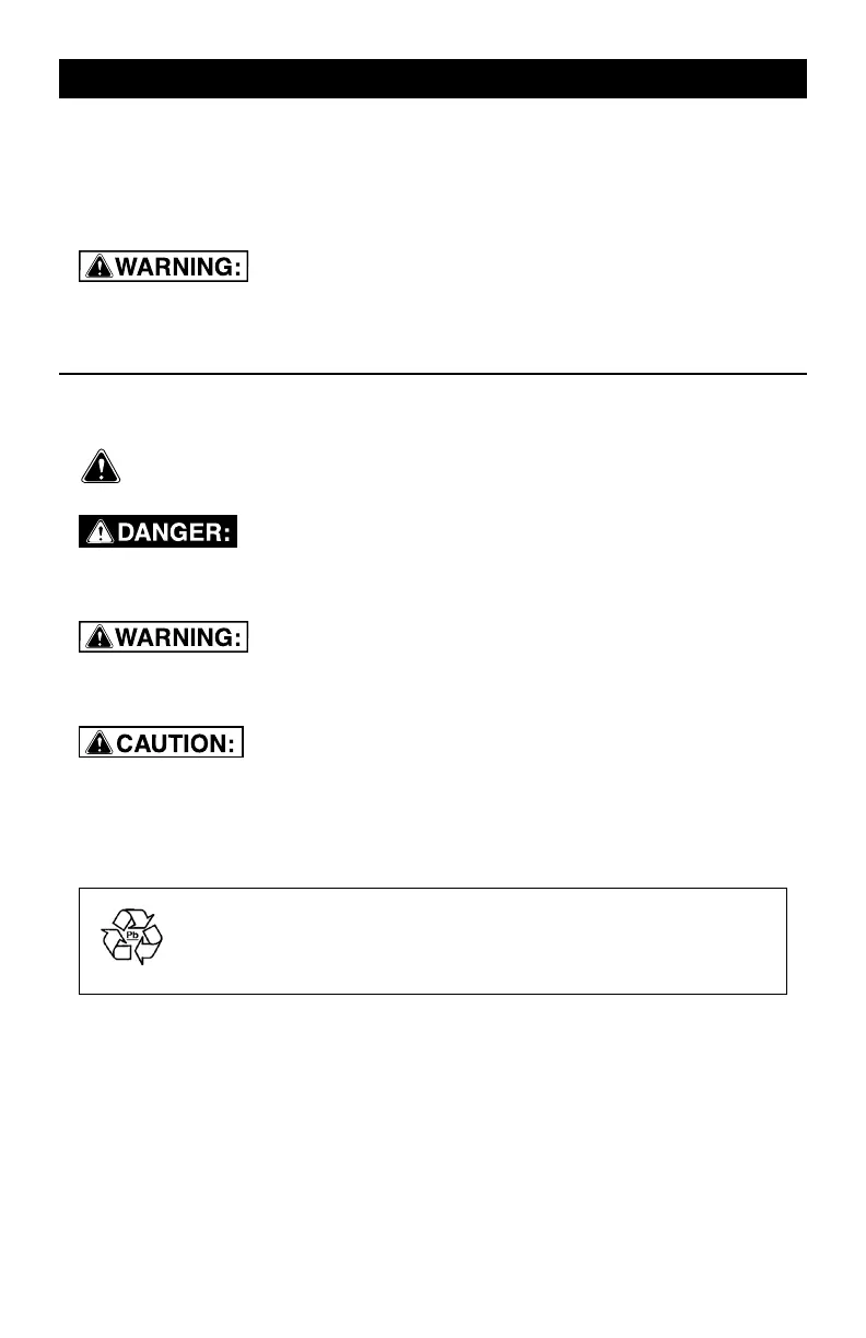 manual, including all safety alert symbols, such as “DANGER”, “WARNING” and