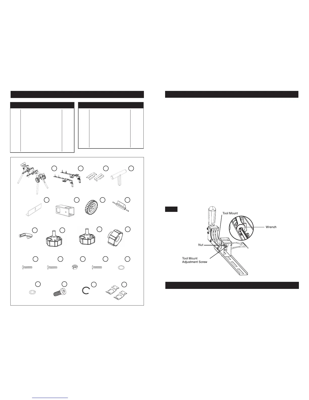 are locked, the tool mount adjustment screws need to be tightened. If the saw and the tool
