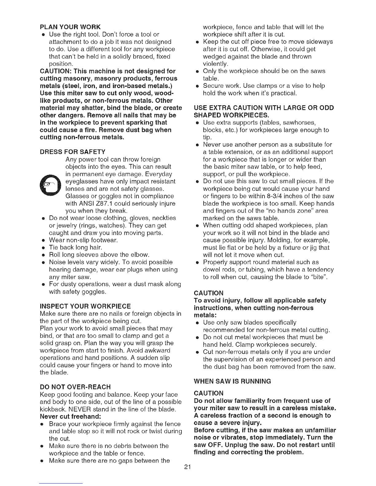 ® Only the workpiece should be on the saws