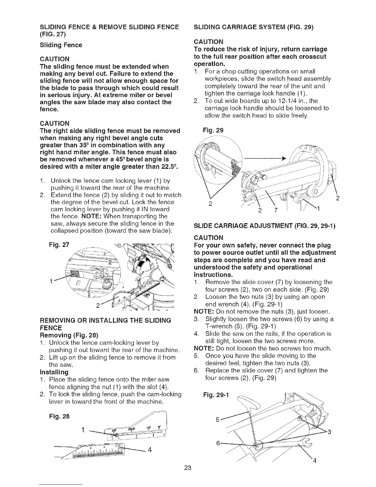 SLIDE CARRIAGE ADJUSTMENT (FIG. 29, 29=1)