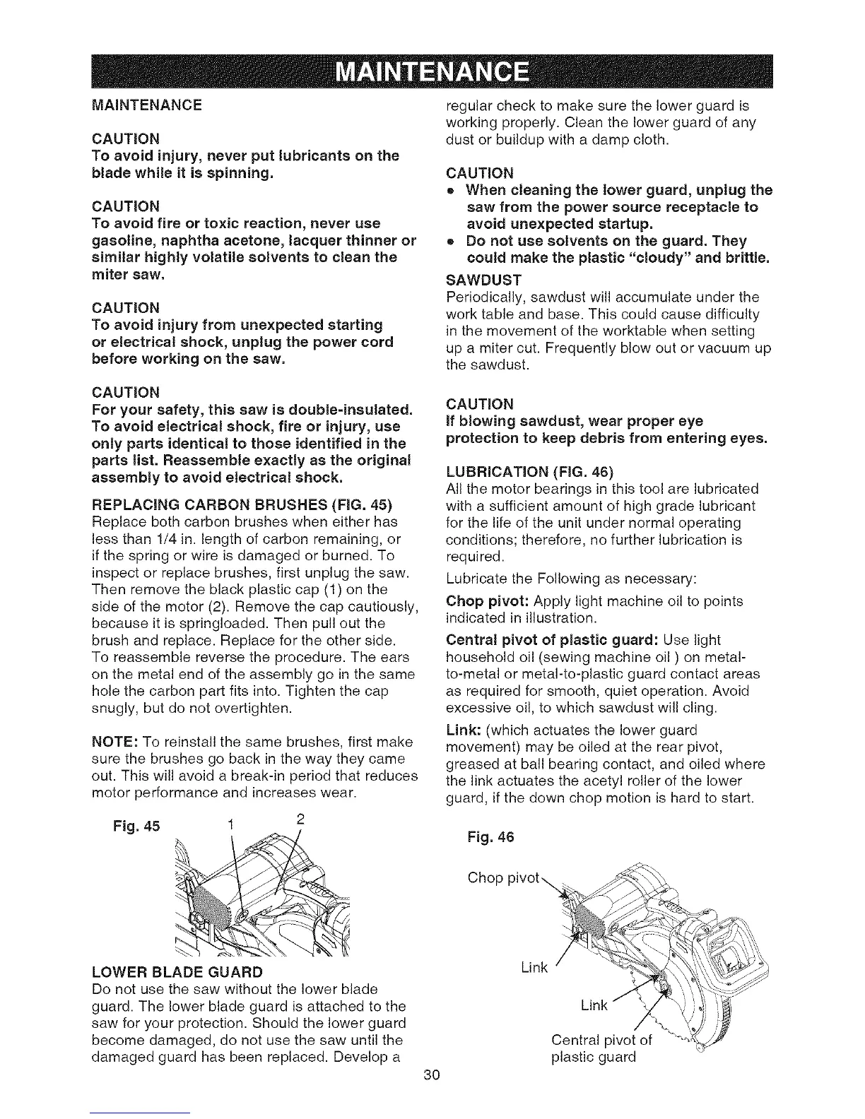 saw for your protection. Should the lower guard