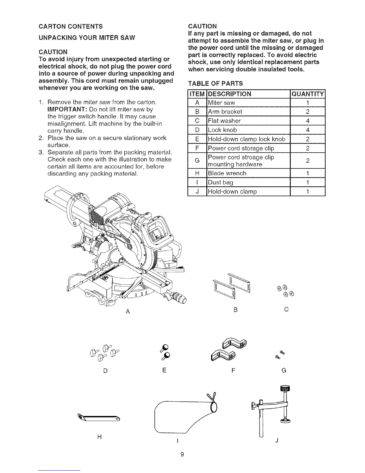 1. Remove the miter saw from the carton.