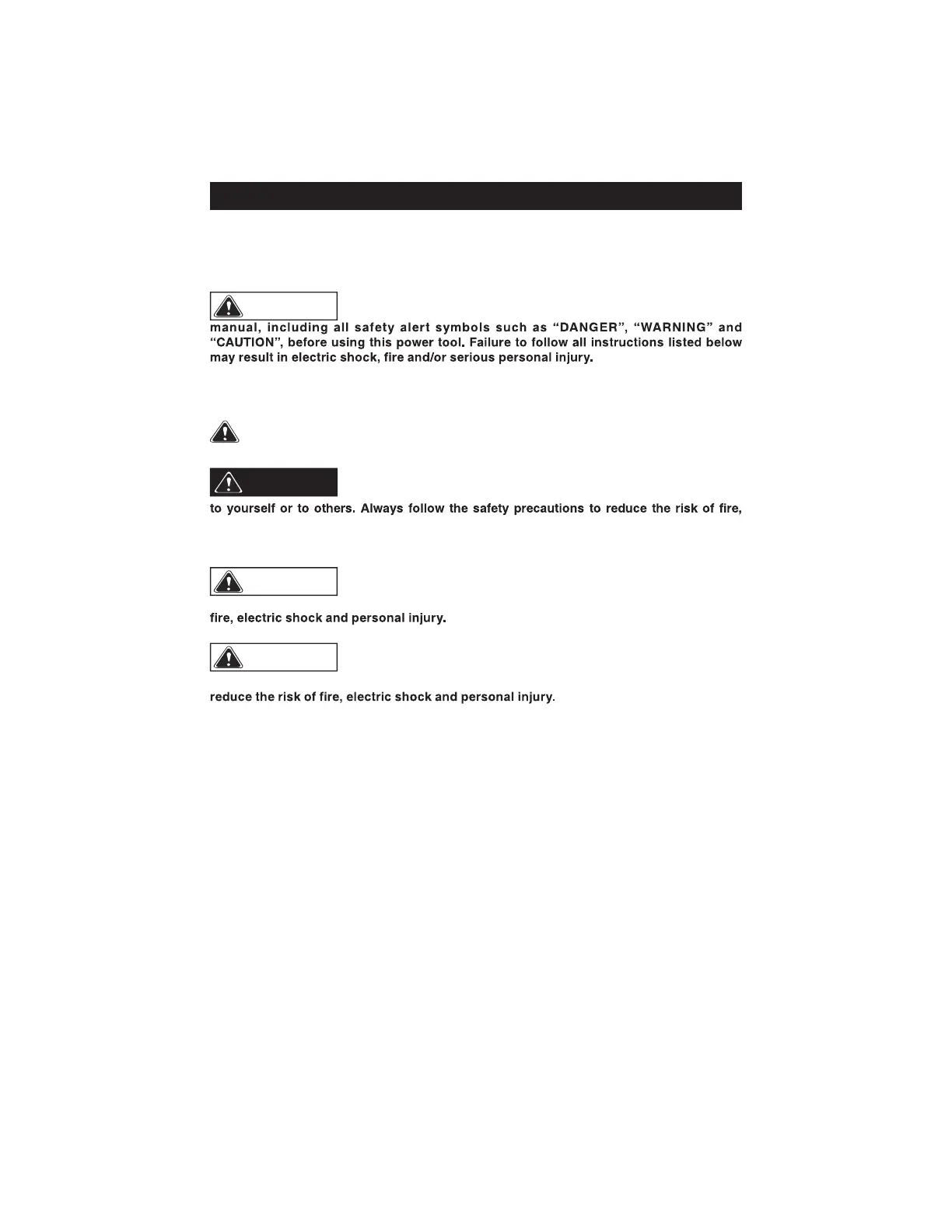 The symbol warnings do not by themselves eliminate any danger. The instructions and