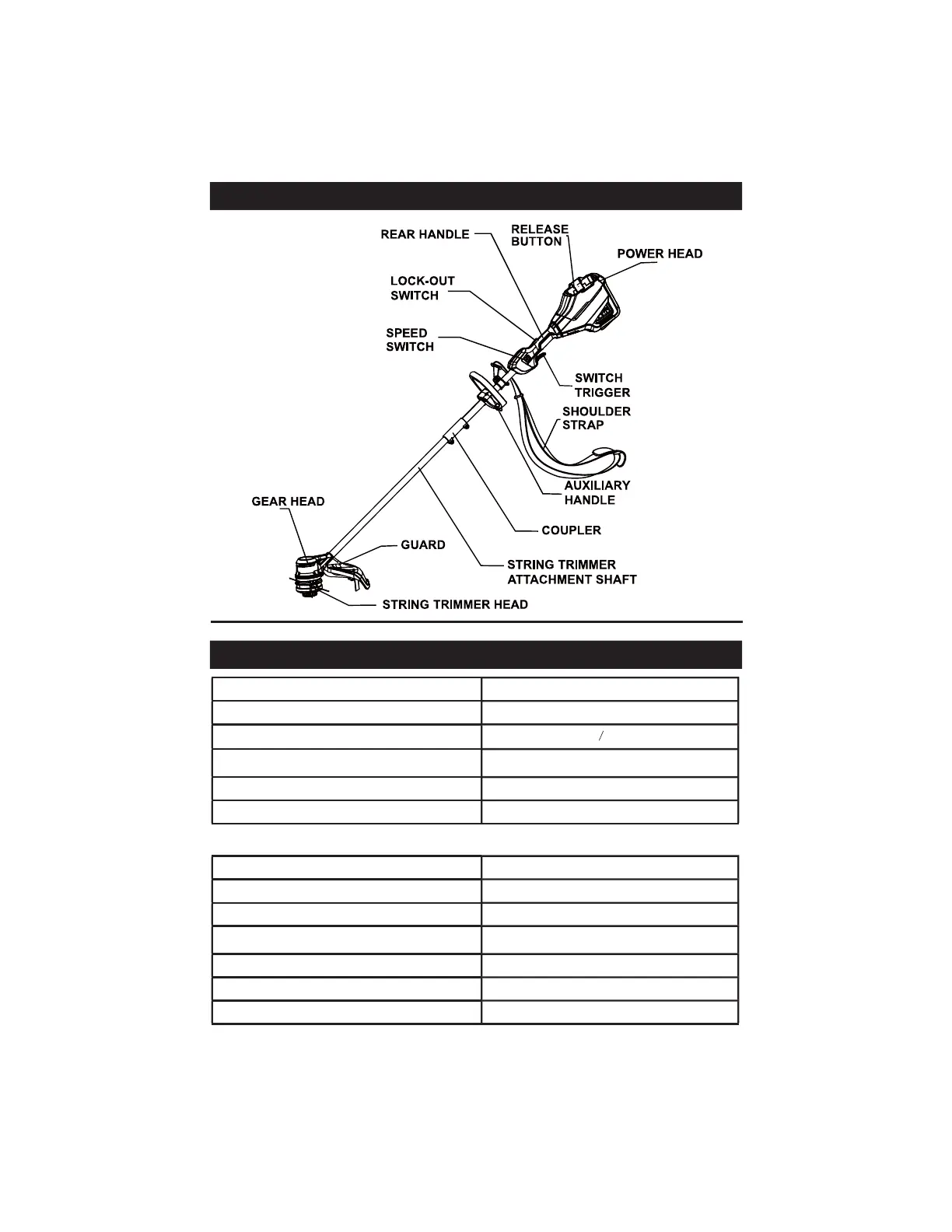 String trimmer operation temperature range 32°F (0°C) - 113°F (45°C)