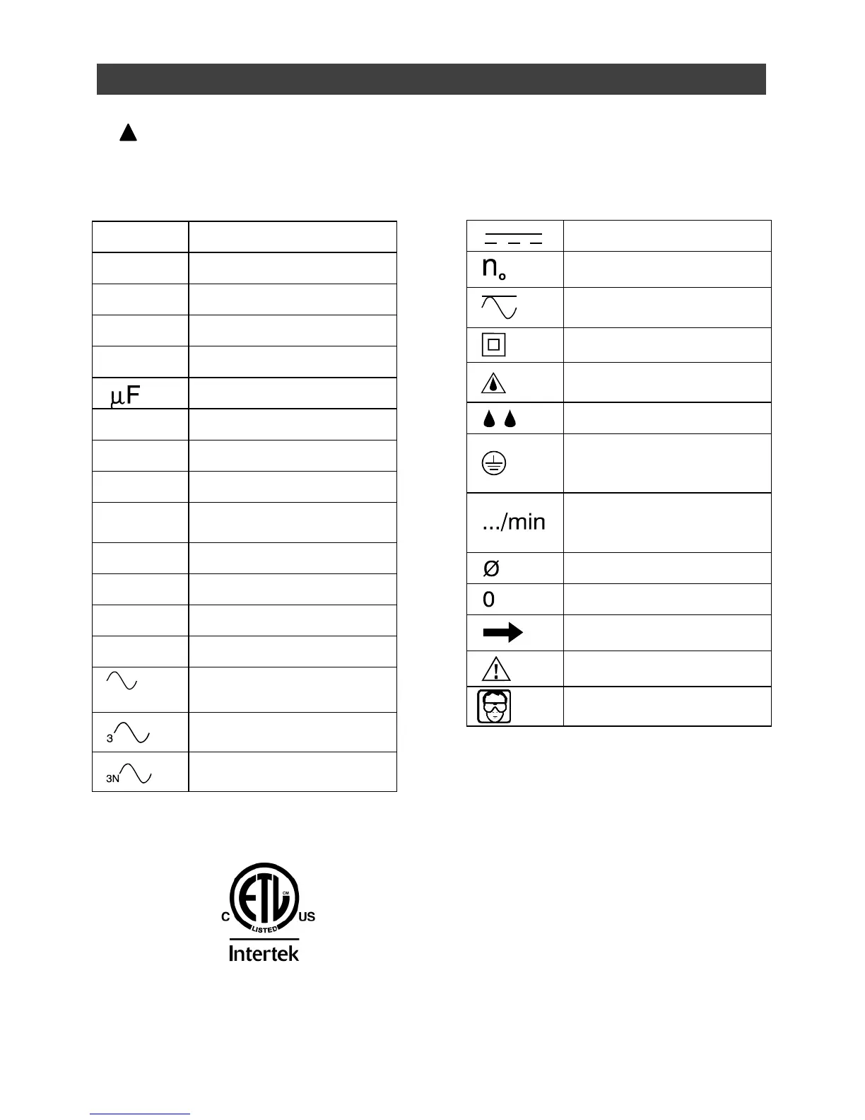 MasterForce v - Symbols and Markings; Electrical and Measurement Symbols; Operational and Safety Symbols