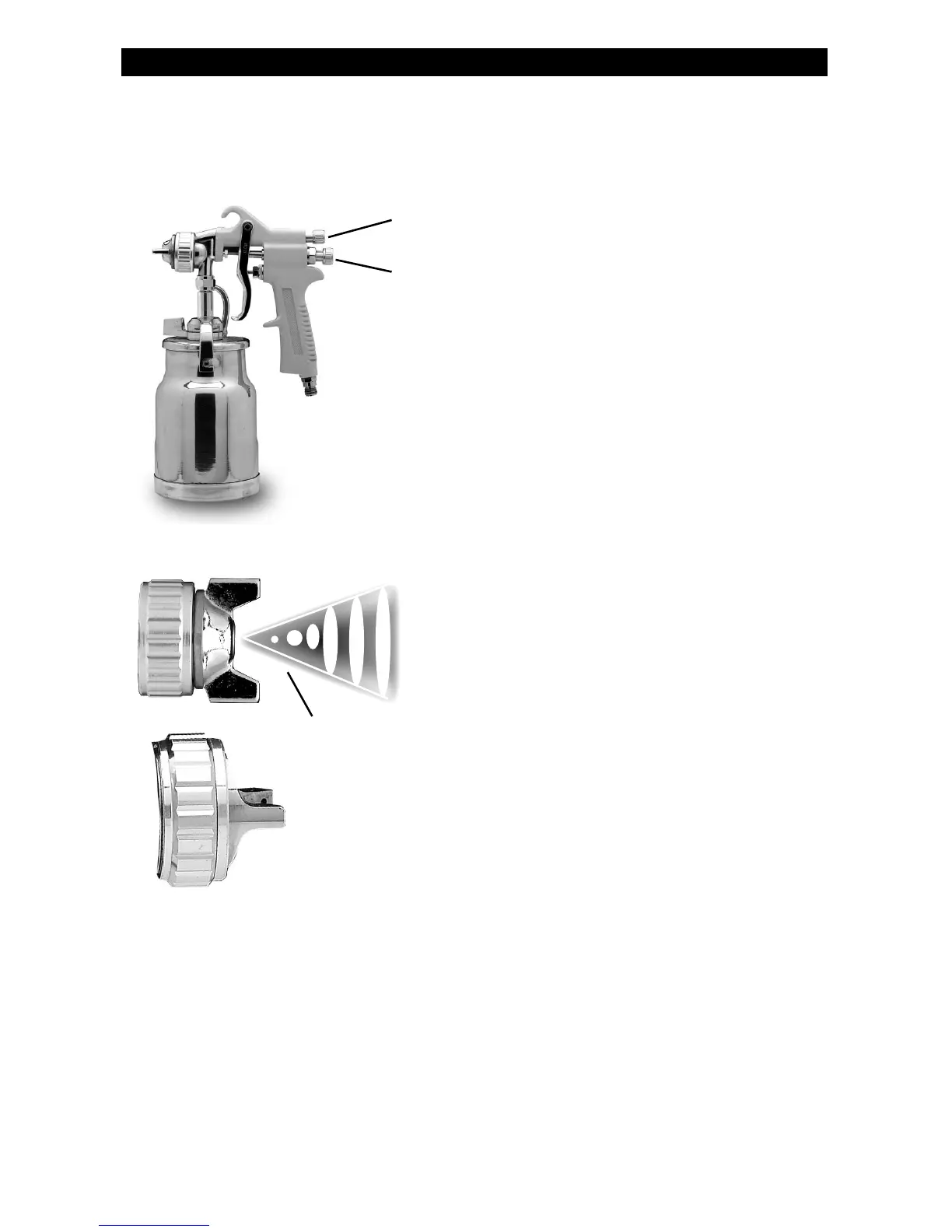 spray. If spray is too fine, then reduce air pressure. If spray is too coarse, then raise air pressure. Adjust