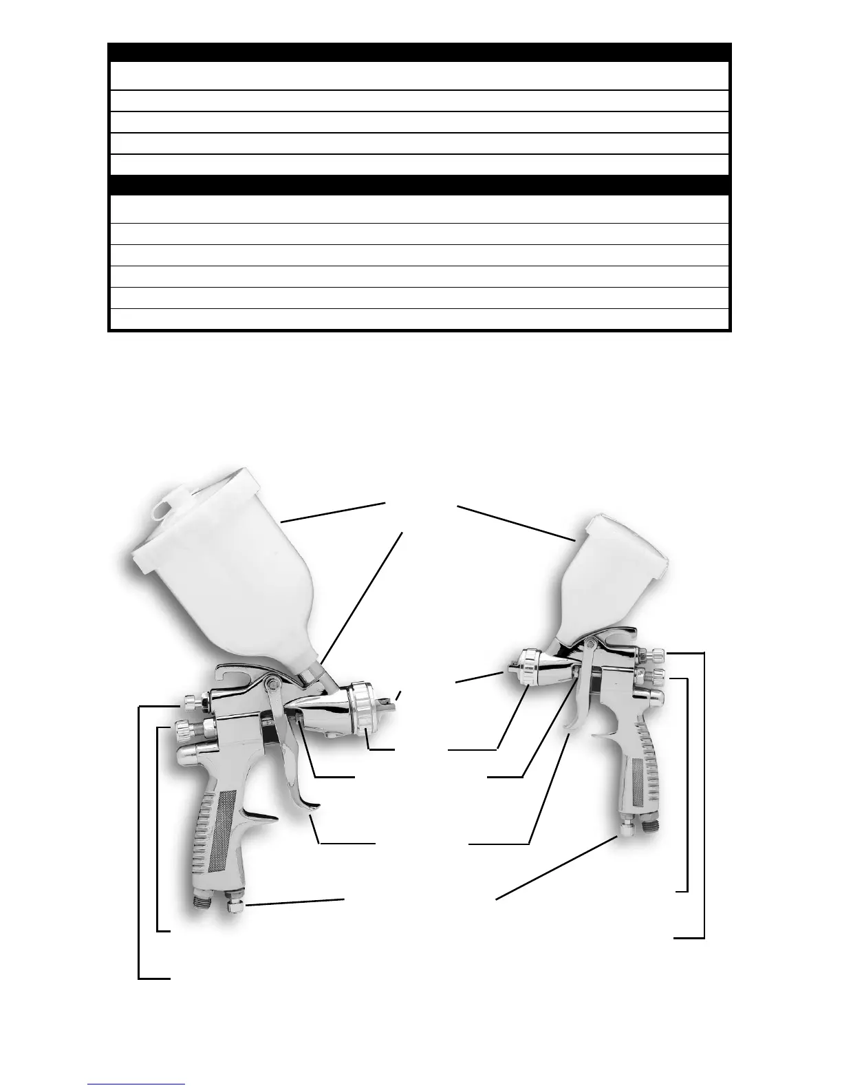 SPECIFICATIONS: GRAVITY FEED SPRAY GUN (690043)