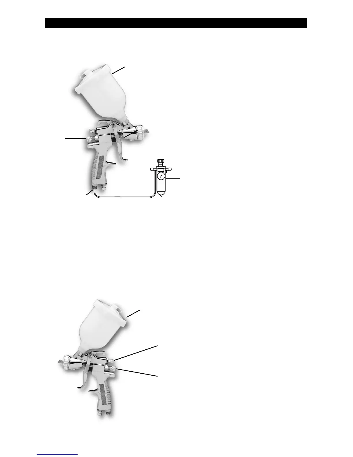 pressure at the gun to operate. Proper air pressure for this tool should be 35 PSI for lacquer and 45 PSI