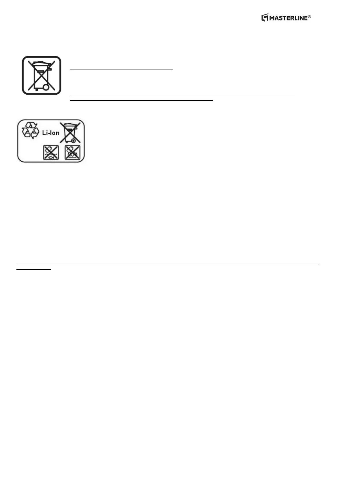 Les accus/ piles doivent être collectés, recyclés ou éliminés en conformité avec les réglementations se rapportant à l’environnement.
