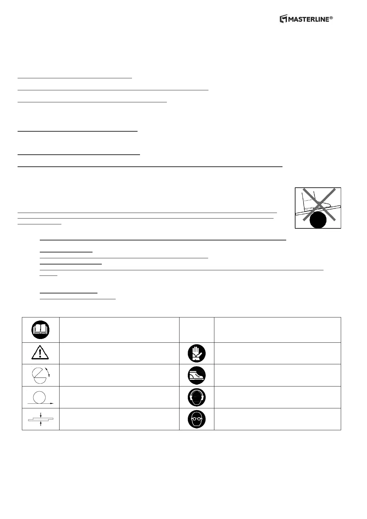 Maskinen skal brukes av én eneste operatør. Under bruk av stropper for emballasje, er det nødvendig med bruk av vernebriller med sidevern. Å overse