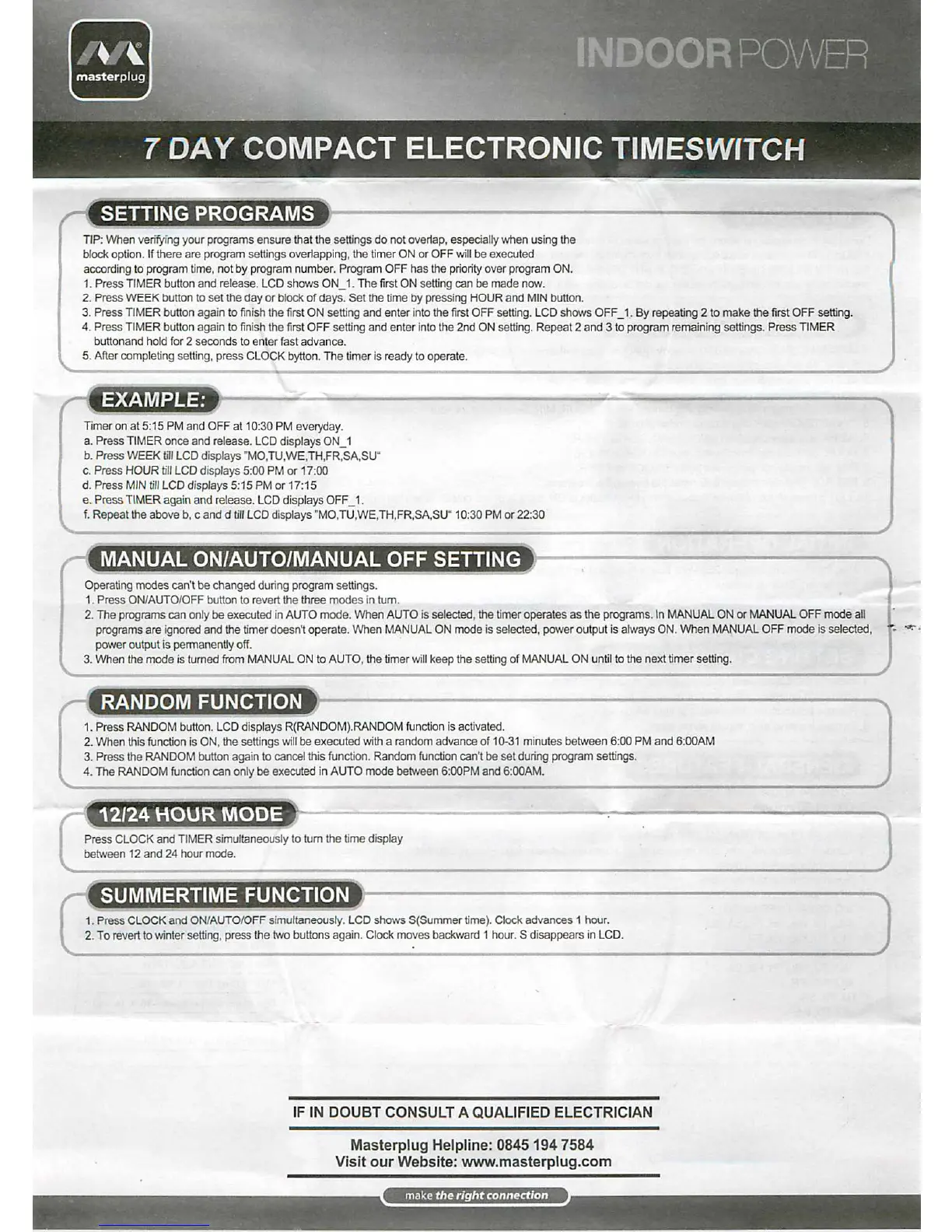 5. Aftercompleting setting, press CLOCKbytton.The timer is ready to operate.