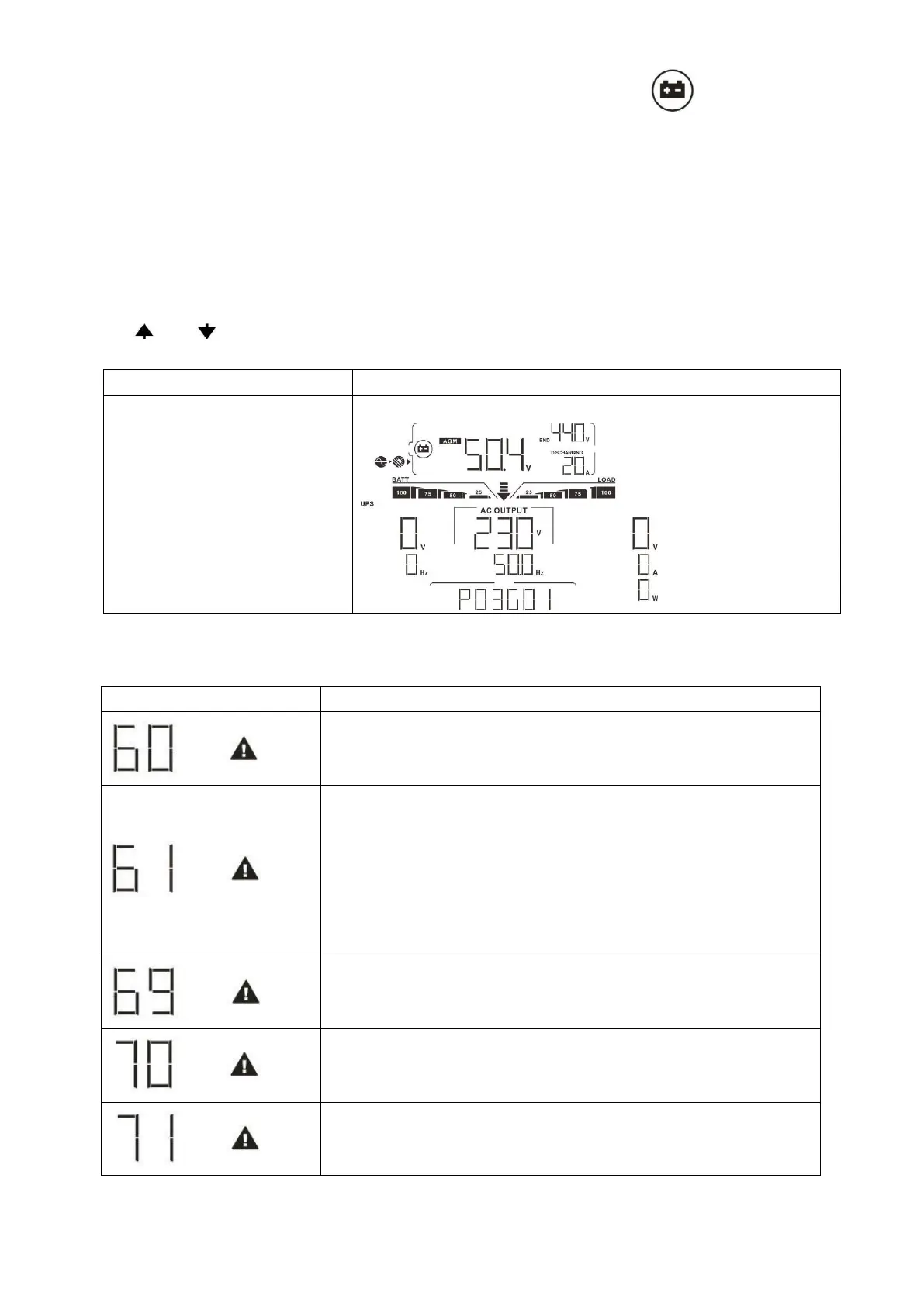 between the inverter and battery is successful, it will show code 71 to