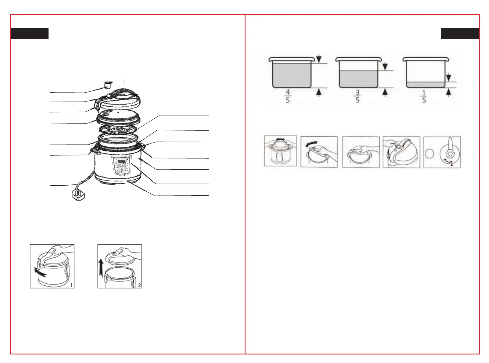 Los alimentos y el agua no pueden sobrepasar los 4/5 de la altura de la olla. Los alimentos que se