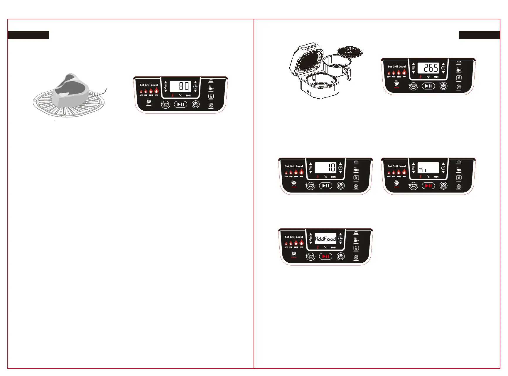 4. Lorsque l'appareil a préchauffé et que le message « Add Food » (Ajouter les aliments) clignote à