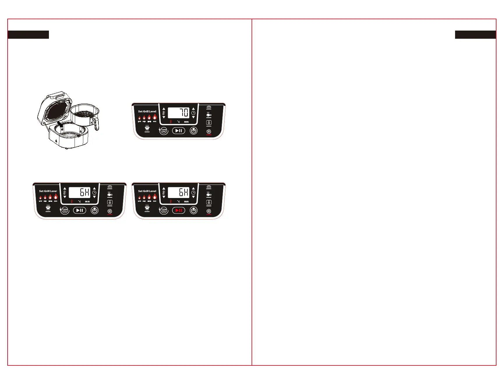 panier. Lorsque le couvercle est fermé, la cuisson démarre et le minuteur commence à compter à