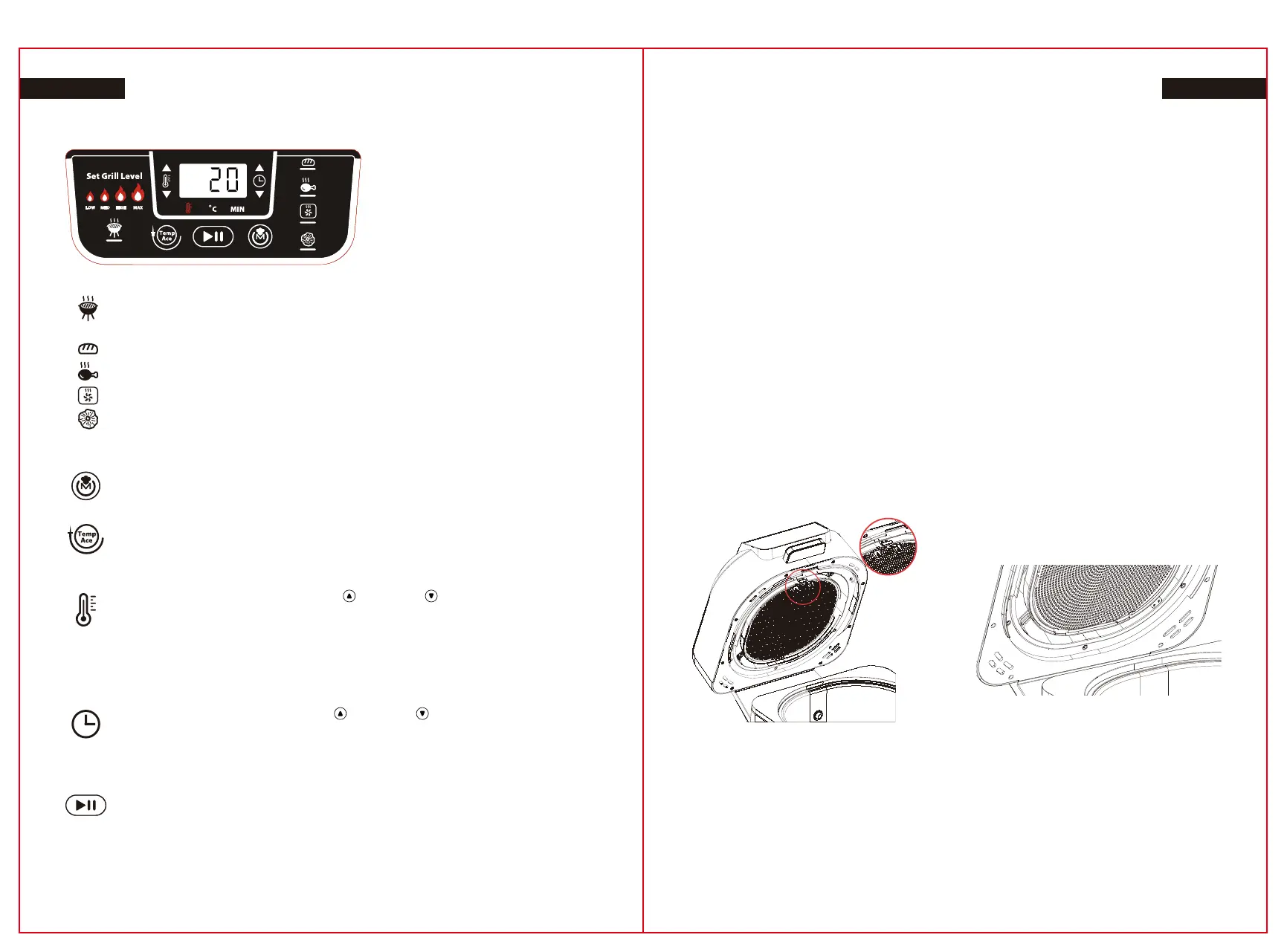 temperatura de confeção para qualquer tarefa. Prima o botão GRILL ou use as setas para