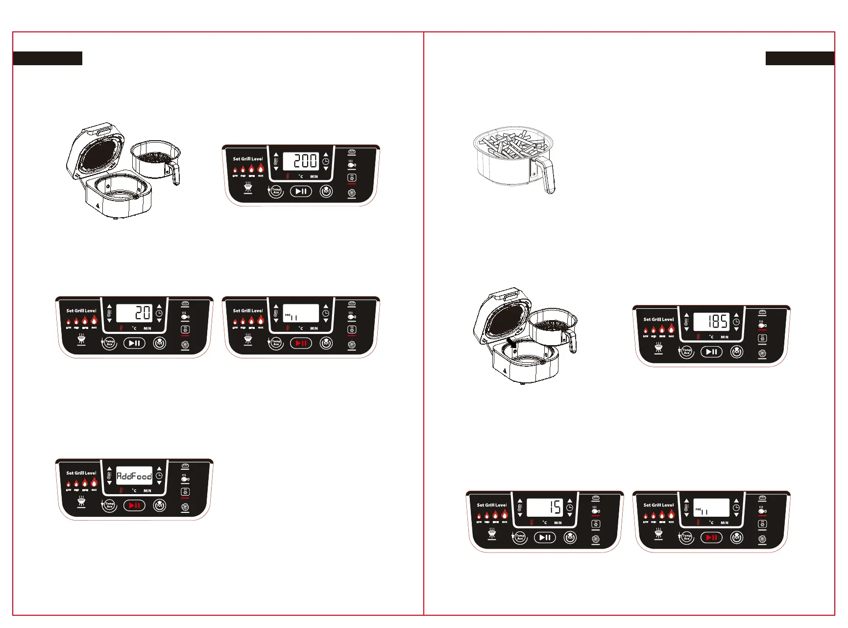 pode anulá-lo premindo o botão AIR CRISP. “Add food” pisca no visor. Coloque os ingredientes no