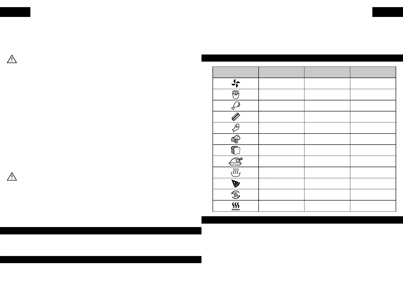 • Durante la frittura ad aria calda, dalle bocchette potrebbe fuoriuscire del vapore caldo. Tenere le mani